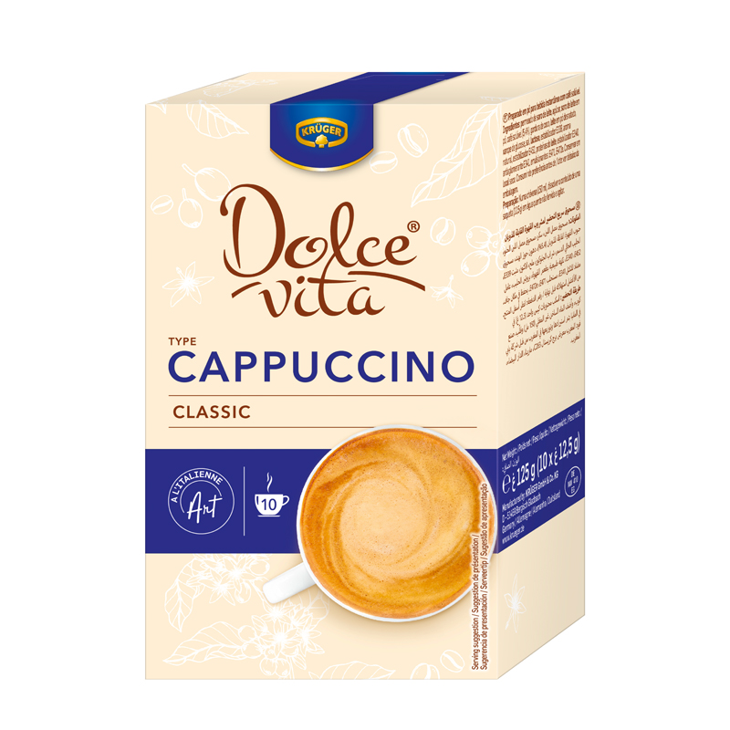 Kruger Dolce Vita Cappuccino Classic vă aduce aroma intensă și textura catifelată a unui cappuccino autentic, direct în ceașca dumneavoastră. Acest amestec instant premium este alegerea perfectă pentru toți iubitorii de cafea care doresc să savureze un moment de răsfăț în fiecare zi. Cu echilibrul ideal între gustul bogat de cafea și spuma cremoasă de lapte, Dolce Vita Cappuccino Classic transformă fiecare pauză într-o experiență plină de savoare.